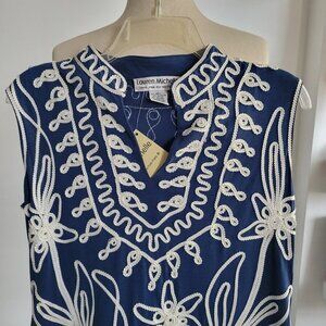 NWT-Lauren Michelle Sleeveless Blue White Stretch Embroidered Top (Size: Large)