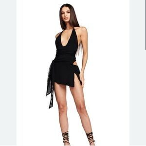 I AM GIA XS BLACK HALTER MINI DRESS
