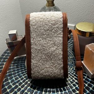 NWT Anthropologie cream and toffee/brown crossbody/waist bag Perfect bag for daily essentials. Horse-bit gold detail with snap closure. She is a grab and go cutie.