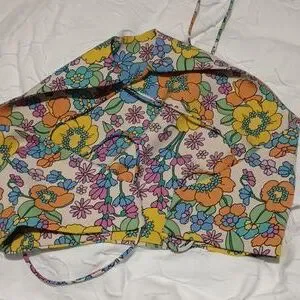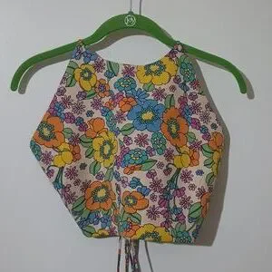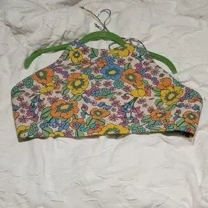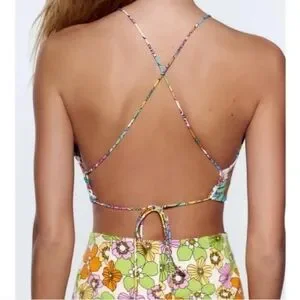 Zara XXL Halter Crop Backless Flower High Neck Top
