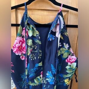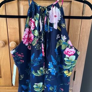 NWT Eliza J Navy Floral Print Chiffon High/Low Halter Midi Dress