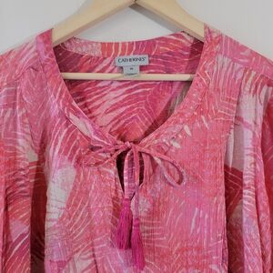Catherine Women's Red Leaf Prints Blouse Sz 3X Tassle 3/4 Sleeve Boho Minimalist
