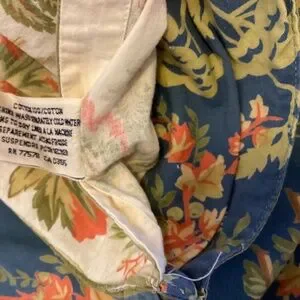 Green, orange, and cream reverse to blue, orange, and green. Easy button closures. From as pet- and smoke-free home.