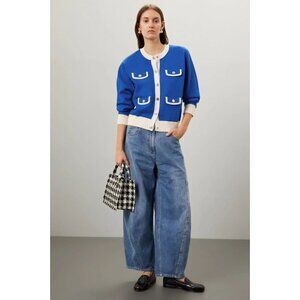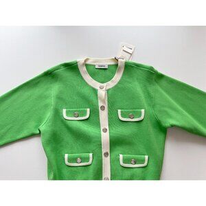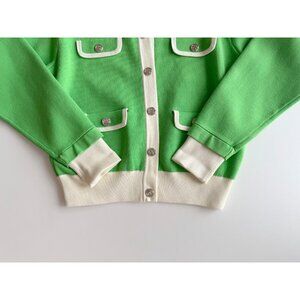 NWT SANDRO Murcie Green Ivory Knit Boxy Crest Button Cardigan Sweater, Size 1/S