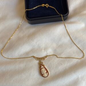 *COLLECTORS ANTIQUE CAMEO* Delicate Gold Necklace/ Oval Pendant & Ornate Setting