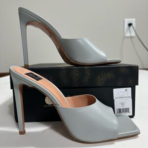 LITA BY CIARA Womens Sandals EU 40 Silver Solid Square Toe Leather Slide Formal