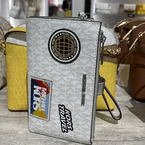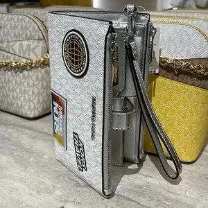 Michael Kors Jet Set Travel Large Embellished Signature Logo Wristlet Wallet Phone Holder Patches
