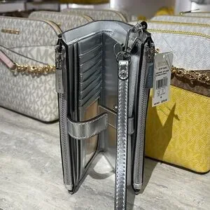 Michael Kors Jet Set Travel Large Embellished Signature Logo Wristlet Wallet Phn