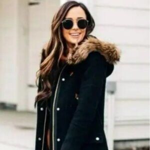 J. CREW Chateau Parka in Italian Stadium Cloth Wool Black Size 10