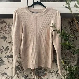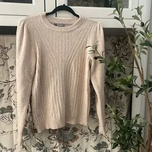 Tan sweater with puffy shoulders. Super cute. Tag is coming off in one corner. Bundle to save.