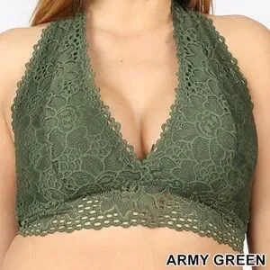 New Zenana Outfitters Sexy Lace Halter Bra Sz 1X/2X/3X Green, Slate Blue & Wine