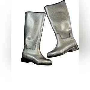 Melissa Fullness Silver Glass Glitter Rain Boots New Size 7