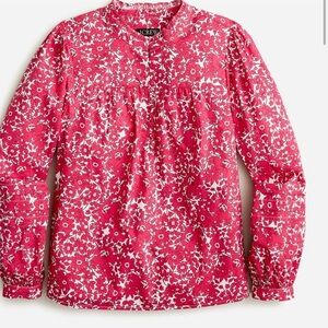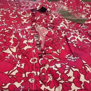 NWT Button-front ruffleneck popover in blushing meadow cotton poplin size large. Approx 24 1/2 inches long