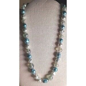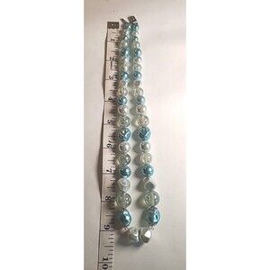 This vintage beaded necklace boasts a stunning blue and teal color scheme, perfect for any fashion-forward woman. The chunky beads are strung together on a single strand measuring 18 inches in length, creating a bold statement piece that is sure to turn heads.