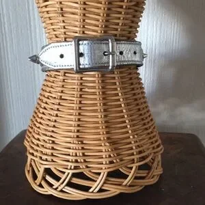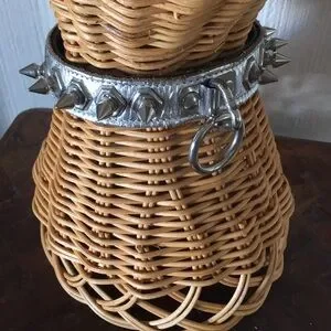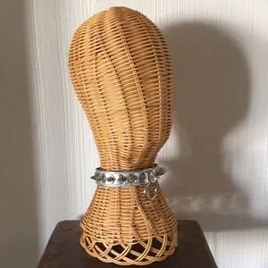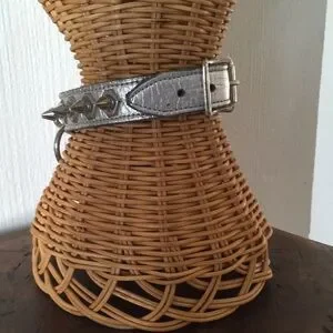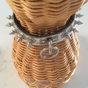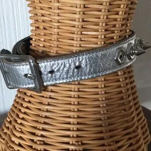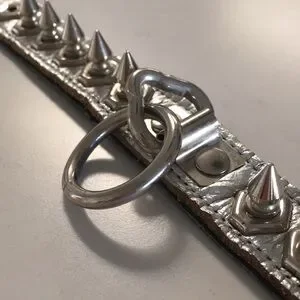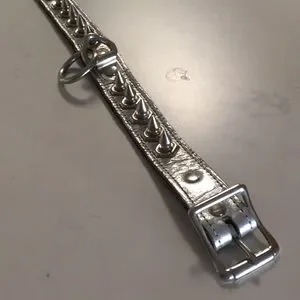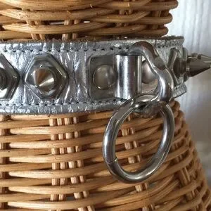 Silver spiked leather lead collar costume Fetish Halloween GoGo Dancer