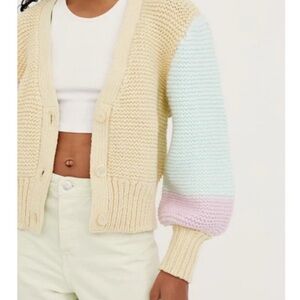 NWT - For Love & Lemons Cardigan. Size Small. Slightly oversized as usual for the brand. Yellow, pink and aqua. Very soft.