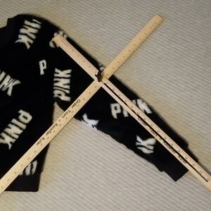 Victorias Secret PINK Black Faux Fur Sweater White PINK logo XS