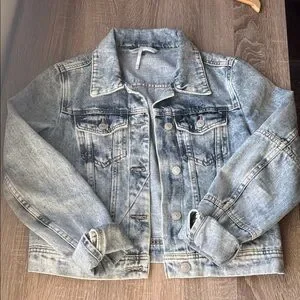 Stylish denim jacket. Classic button-up design. Perfect for casual wear.