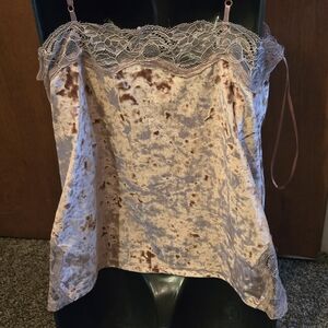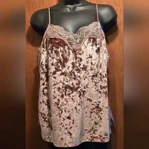 Lauren Conrad mauve crushed velvet & lace stretch camisole szM NWOT