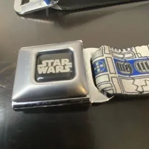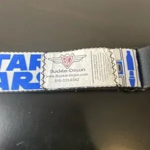 Star Wars white blue silver Buckle Down belt. Adjustable from 25in to 45in when laid flat.