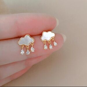 cloud rain weather outdoors whimsical fun cute casual novelty party metallic colorful clear white cream gold rhinestone embellished sparkle shiny bohemian boho drop dangle