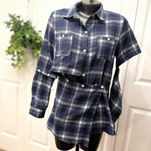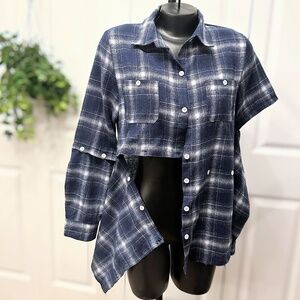 GUC Plaid button down in navy and cream