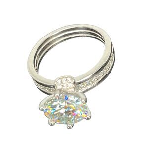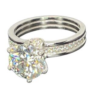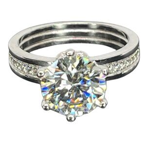 Moissanite (3 cts. t.w.) Sterling Silver Engagement Ring (Sz 6) *GRA Certified*