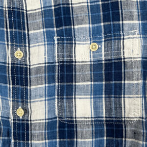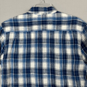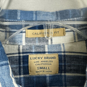 Lucky Brand Linen Shirt Button Front Long Sleeve Plaid Mens Small California Fit