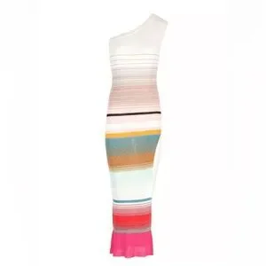 Missoni Maxi Dress Cover Up Striped Knitted One Shoulder Bodycon Slit S