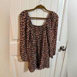 Abercrombie & Fitch Orange and Blue Floral Emerson Babydoll Mini Dress