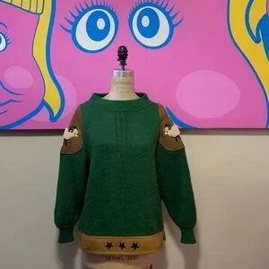 This whimsical sweater by ICEBERG is a vintage wonder! Suede patches with rams or lambs on it, I really can't tell! Pair with black skinny jeans and boots for the perfect fun fall look. JC de Castelbajac was the designer on this.
