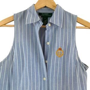 Vintage Lauren Ralph Lauren Striped Crest Logo Button Front Sleeveless Shirt Dress
