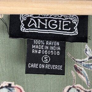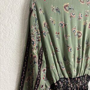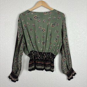 Angie Floral Boho Plunge Neck Blouse Olive Green Small Cottagecore Smocked Fall