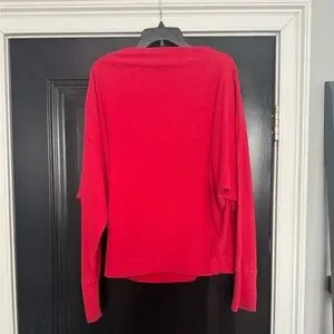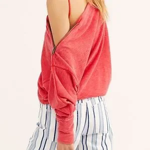 â˘Lightweight thermal top featured in a slouchy silhouette with contrasting stitching.