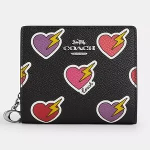 Coach Snap Wallet With Heart Bolt Print nwt