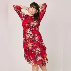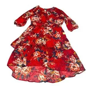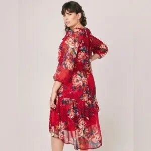 FIGUEROA & FLOWER Floral Print Red Midi Dress Size 2X NWT