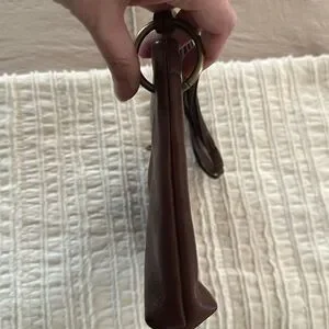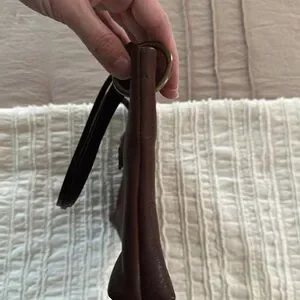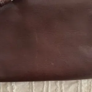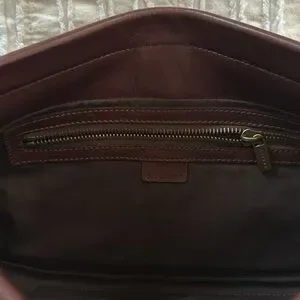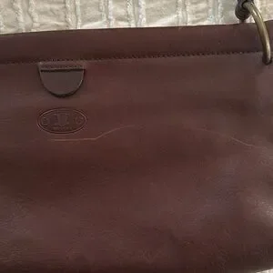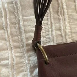 Super cute leather shoulder bag from Celine. It does have a structured opening that stays open. Super cute leather shoulder leather fringe tassel on the front. I absolutely love I’ve the strap design. Interior is clean and zipper pocket is functional. There are some visible scratches on the front and the back on the leather. This could possibly be fixed with a little bit of leather cleaner.