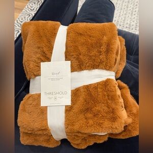 Threshold Faux Rabbit Fur Reversible 50x60" Throw Blanket Light Brown*