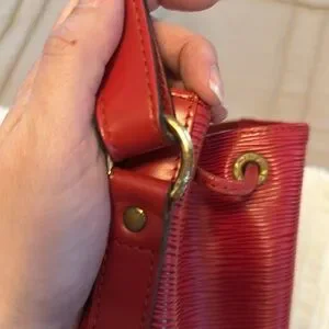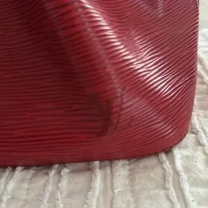 Gorgeous red Epi Noe in great condition. The exterior shows very little signs of wear and the corners only have minimal rubbing. There is some tarnishing on the hardware but not very noticeable. Interior is pr clean. Handle is in great condition and drawstring is still completely functional.