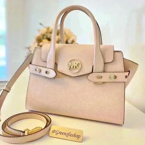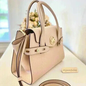 Michael Kors Purse Carmen Medium Flap Satchel shoulder bag buff