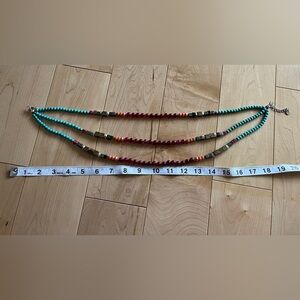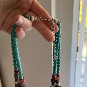 Gorgeous multicolor triple-strand statement necklace with semiprecious stones! New without tags NWOT, purchased and never worn. Chunky, colorful and funky. Measurements in photos. Adjustable clasp lets you lengthen it if you want. Pink, bronze, turquoise blue and orange. No flaws. Stored in a smoke-free home away from pets. All sales final. Happy to answer questions, bundle and consider offers!