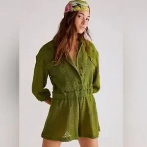 green knit crochet free people romper