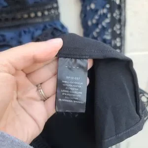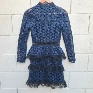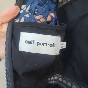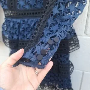 Self Portrait | High Neck Star Lace Panelled Dress in Navy Blue Black Size 0