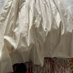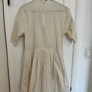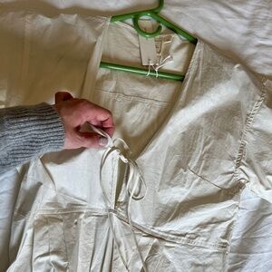 Brand new with tags. Full length off-white dress with deep v neckline, string tie for closure, pockets, and square sleeves.