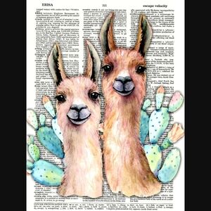 Llama Duo Cactus Blossom Dictionary Art Print