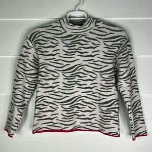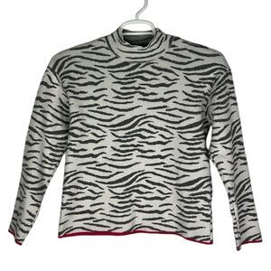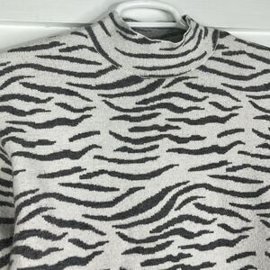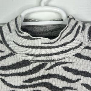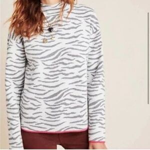 Anthropologie Mock Neck Gray Zebra Print Sweater Size Small
