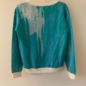 Anthropologie Artwork Lauren C Walcott Wool Blend Mixed Media Lama Sweater