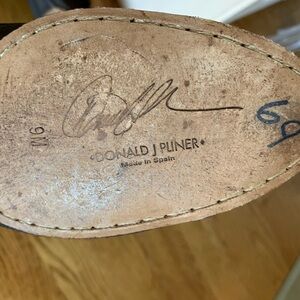 Chocolate brown suede bootie by Donald Pliner. Sz 9. True to size. Leather sole. Good used condition from smoke free home. Blue contrast stitching. Flap buckle