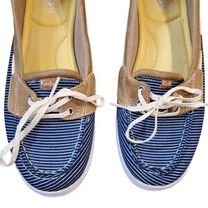 Keds Ortholite Navy White Tan Striped Loafers Shoes Laces Size 8.5