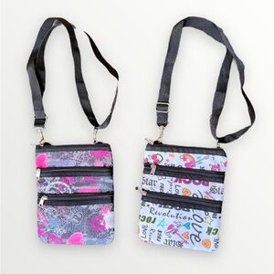 Angels crossbody bags, each with three pockets that close with a zipper. Adjustable, removable strap. Great designs, white one does have a small blemish near the lower zipper. Great preowned condition for both! See photos! 😃